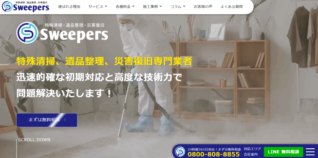 料金体系は明確で、1K 30,000円~、1LDK 60,000円~と設定されており、作業費用や処分費用などの詳細も丁寧に説明されています。また、損害賠償保険にも加入しており、安心して依頼できる体制が整っている業者といえるでしょう。