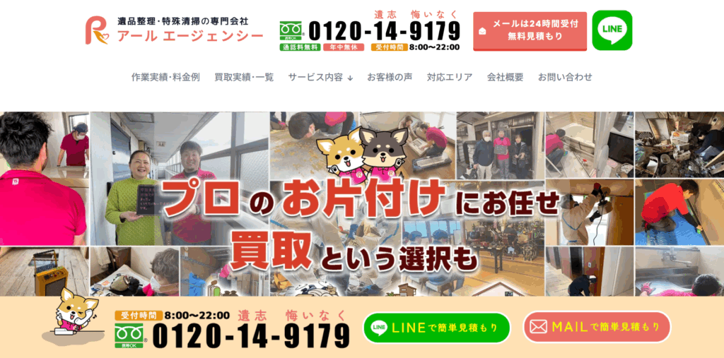 買取サービスも行っていて、遺品整理の際に発生する不要品の処分や買取にも対応しています。自社で「総合リサイクルショップ ネオプライス(店舗は大阪)」を運営しているところもポイントです。