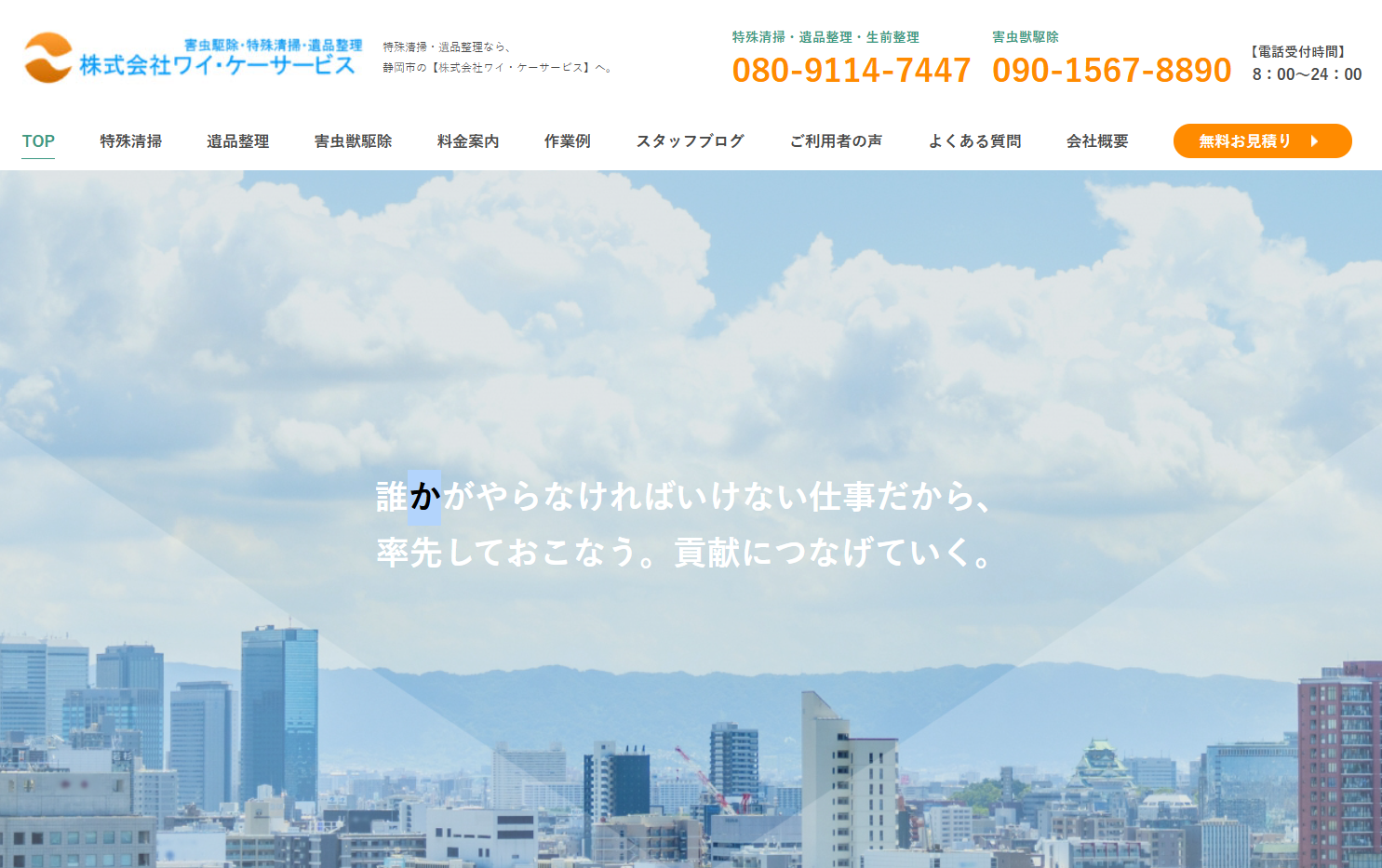 ワイ・ケーサービスの特徴:特殊清掃から害虫駆除まで、人が避ける仕事を率先して行う