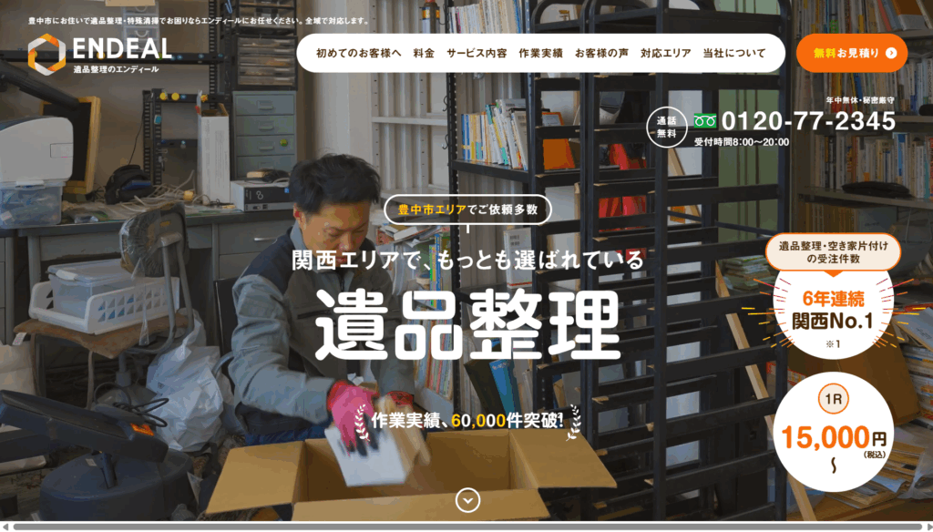さらに、対応地域が近畿全域にわたるため、大阪府豊中市をはじめ、近畿地方にお住まいの方ならどこからでも安心して依頼できます。広範囲をカバーしていることで、遠方に住んでいる遺族も安心して故人の遺品整理を任せられるでしょう。