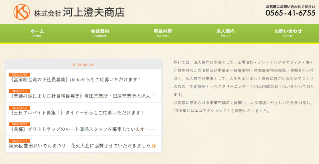 河上澄夫商店は、愛知県豊田市に拠点を持ち、工場や事務所・介護施設などの清掃や産業廃棄物・一般廃棄物の収集運搬を手がける法人です。個人向けには、不用品回収に加え、生前整理・ハウスクリーニング・ごみ屋敷の清掃・遺品整理など、住空間の整理に関する幅広いサービスを提供しています。