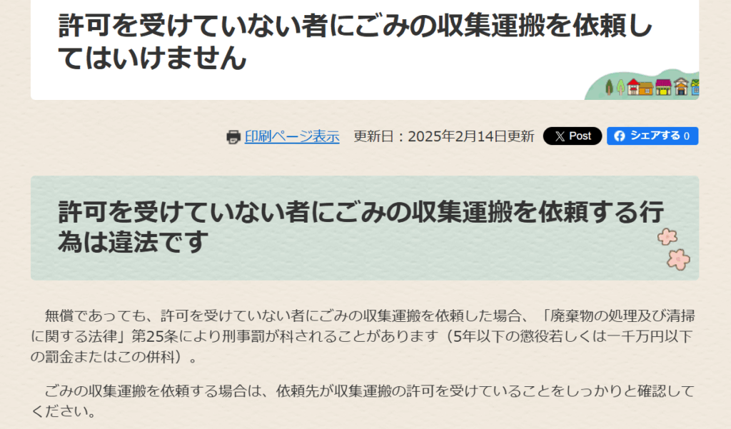 出典:山口市「許可を受けていない者にごみの収集運搬を依頼してはいけません」