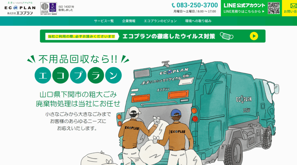 | 7 | 株式会社 エコプラン | 3.5/5.0 | ハウスクリーニングや特殊清掃にも対応 | 山口県全域 | 有り◯ | 在籍◯ | 記載なし | 記載なし |