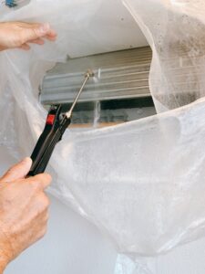 フィルターや吹き出し口に溜まったホコリや汚れを軽く掃除しておくと、業者がより効率的に作業を進めやすくなります。さらに、クリーニング作業をスムーズに行うために、エアコンの周囲に置かれている物を片付けることも大切です。