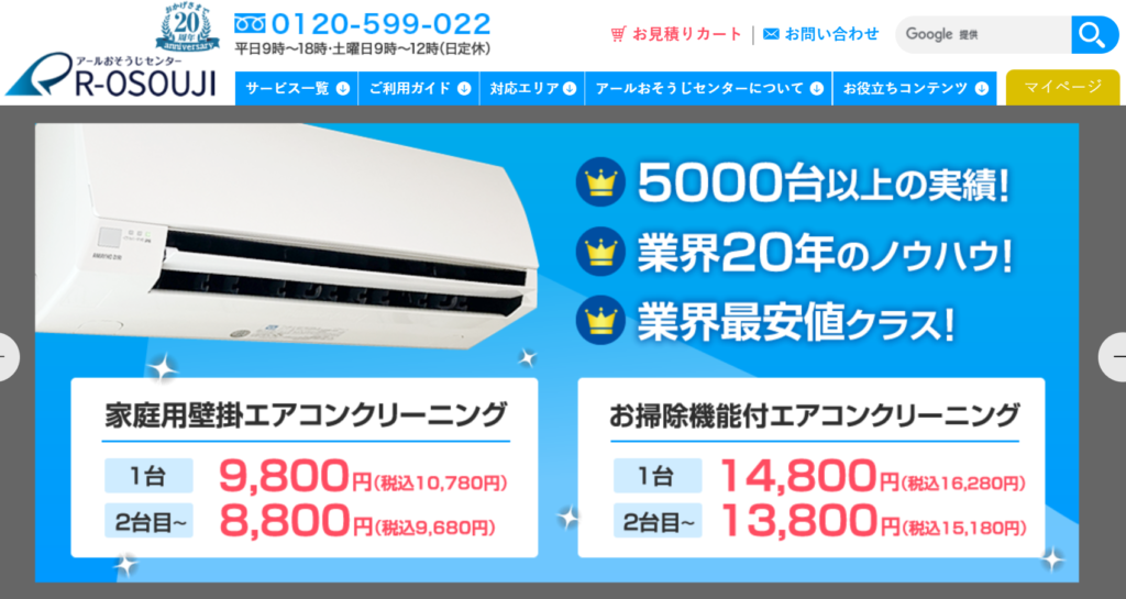 アールおそうじセンターは、東京都・神奈川県を中心に、業界歴20年、5000台以上の清掃実績を持つ業者です。エアコンは毎年新機能がどんどん追加されて、清掃工程も複雑になっていますが、勉強会・研修を行っているので、新しいエアコンにも対応できます。