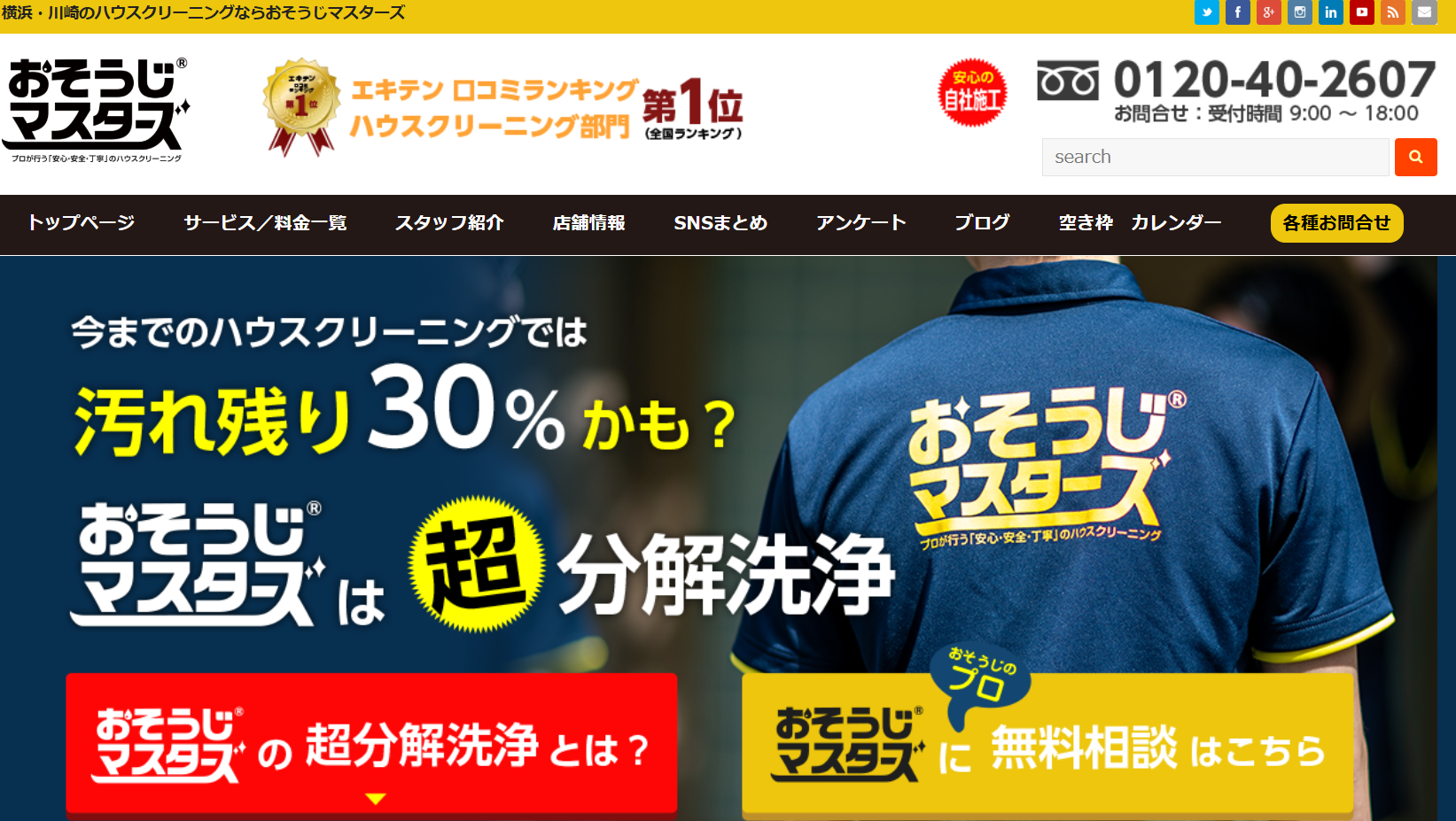 | 業者名 | ![]() 東京ガス | ![]() ユアマイスター | ![]() おそうじ本舗 | ![]() ダスキン | ![]() ハートクリーニング | ![]() ベアーズ | ![]() おそうじ革命 | ![]() おそうじマスターズ | ![]() カジタク | ![]() アールおそうじセンター |